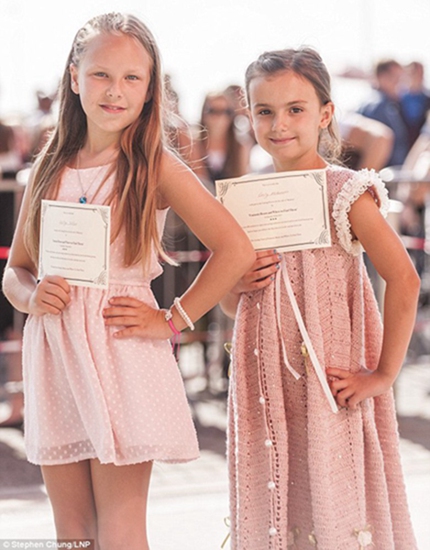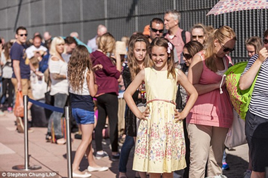 懷抱希望的小女孩兒:排在隊伍最前面的是來自曼徹斯特的凱特琳·托騰(Kaitlyn Totten)(左)和艾米麗·麥克拉倫斯(Emily McClarence) (右)。她們的手里驕傲地拿著已參加公開海選的證明。