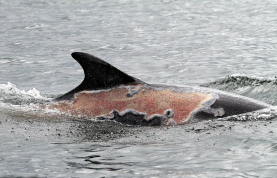 英海豚被嚴重曬傷 背部大面積脫皮。